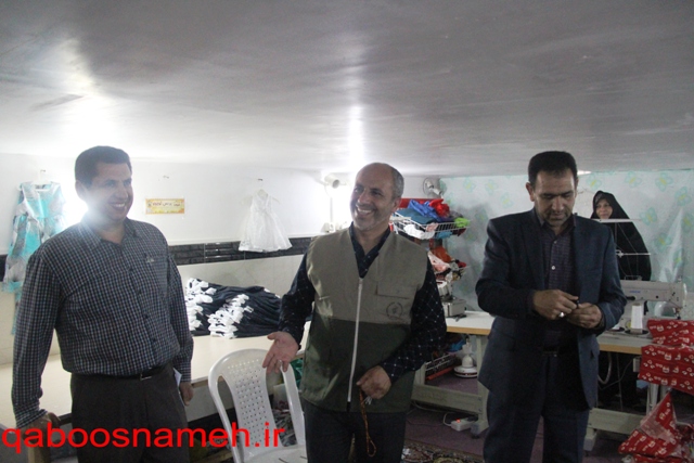 خانم حسینی یکی از تولید کنندگان گنبدی است که با حمایت بسیج سازندگی تولیدی خیاطی را در طبقه همکف منزل مسکونی خود به راه انداخته است.
